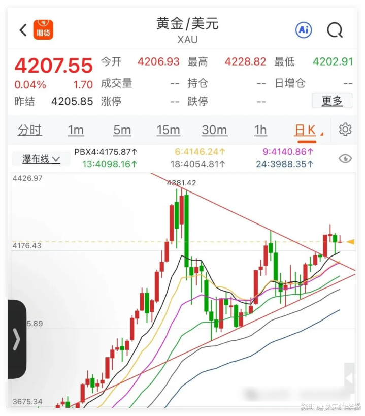 昨天我们说黄金要涨只能在4200之上,也就是5日线之上;一旦下了,就要走下跌了,市场呢它总是变幻莫测的,就跟彩票一样,虽然就那么几个数字,每次都差一点就完美了,但是就很难完美。昨天黄金,日内两次下破4200美元都给拉起来了;我们也说了,下破这里之后看空,但是如果想起来除非有超级利多,才能够拉起来。市场有时候就是这样,昨天市场上有两个消息,第一个消息是美国总统川普,他说要打击委内瑞拉了,他到底是嘴炮还是开炮,影响差别很大。如果真的开炮了,那对黄金降是很大的利多;如果继续嘴炮,那黄金就跟一个窜天猴一样,往上一冲,还会下来。第二个消息是还是美国总统特朗普他昨天说美联储主席候选人只剩下一位;也就是说,美联储下一任的主席,他已经确定了。这个消息影响也是比较大的,所以两个消息的推动下,黄金两次下跌都没稳住跌幅。